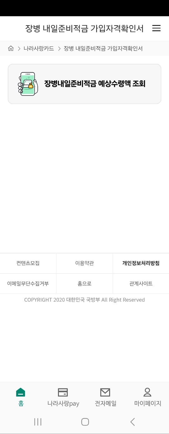 가입자격확인서 발급 앱 ‘나라사랑포털’ 설치(가입자격확인서는 입영 후 발급 가능)