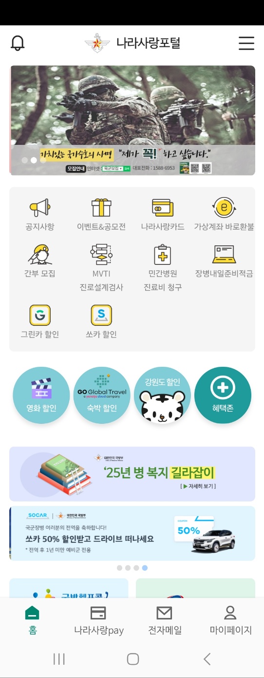 현역, 상근예비역 비대면 가입 - 나라사랑포털 APP 접속 비대면 가입