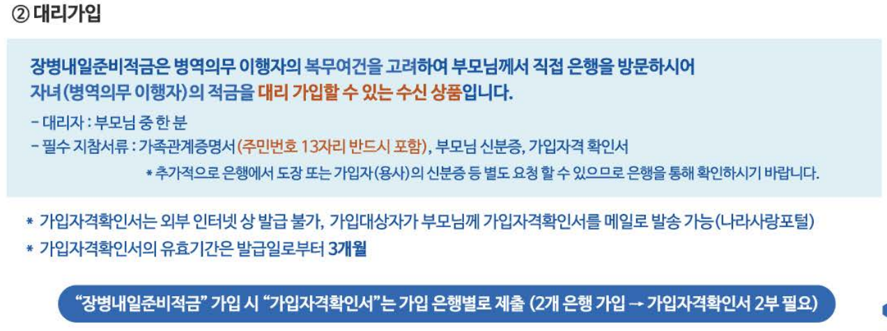 대리자(부모님) 가입 - 가족관계증명서(주민번호 13자리 반드시 포함), 부모님 신분증, 가입자격확인서 지참 후 은행 방문 가입