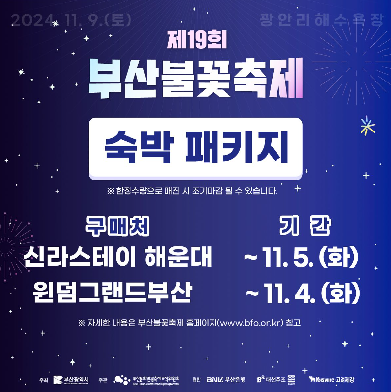 불꽃놀이와 연계하여 교통, 숙박 패키지 구매도 가능하니 활용해 보시는 것도 추천합니다~!