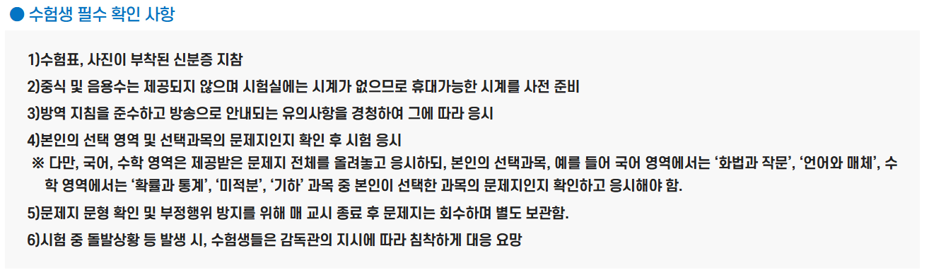 수능을 준비한 학생들과 보호자들이 알아둬야 할 사항 꼭 확인해 보세요.