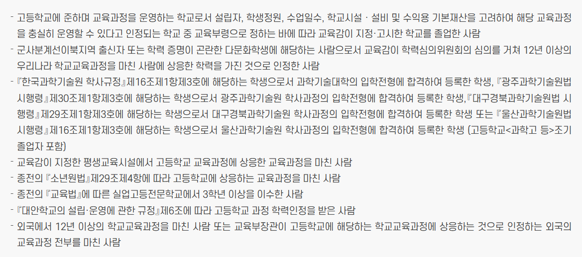 고등학교 졸업예정자 / 고등학교 졸업자 / 고등학교 졸업학력 검정고시에 합격한 사람 /
