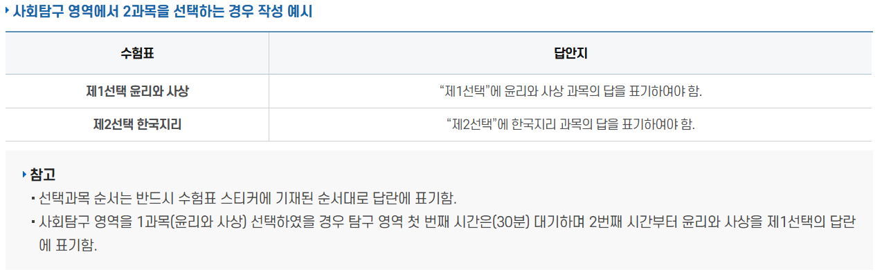 i) 탐구 영역 지원자는 본인이 선택한 과목을 순서대로 기재·응시하여야 함.